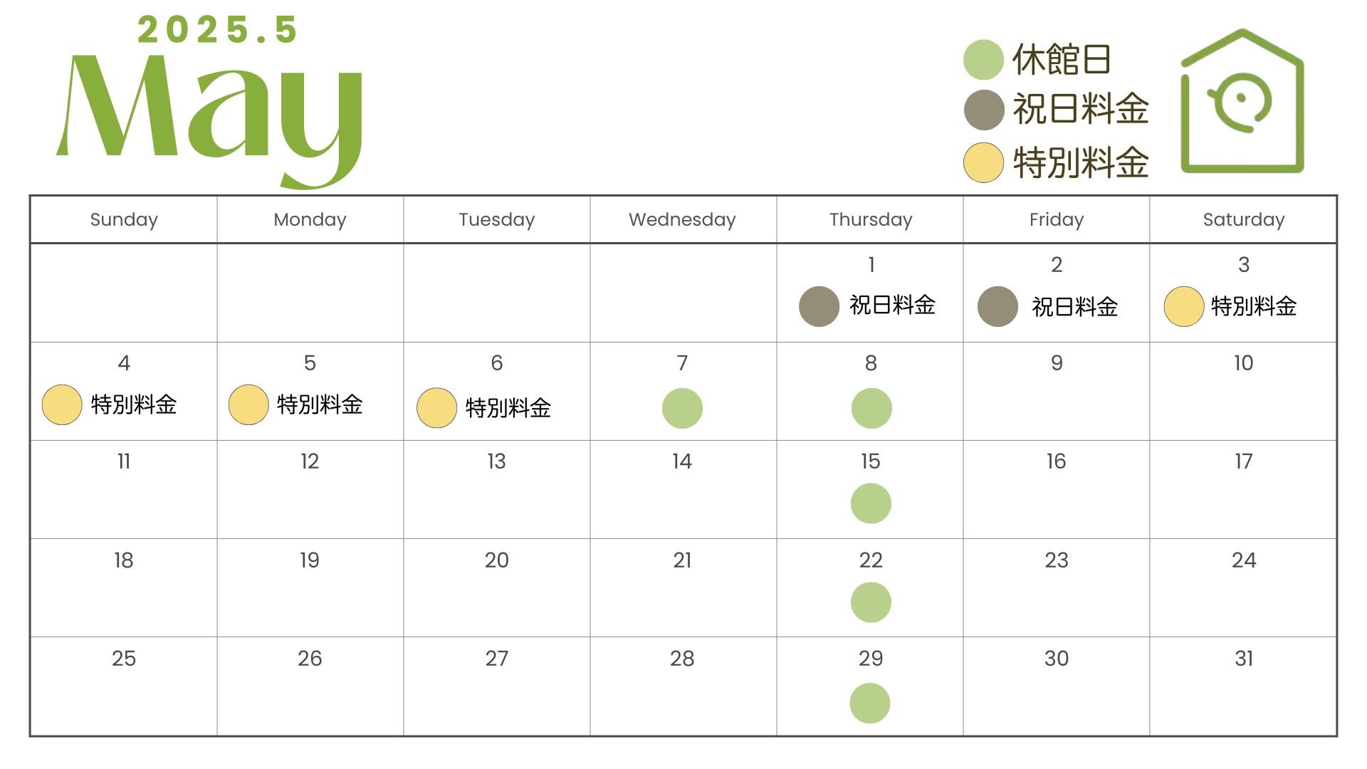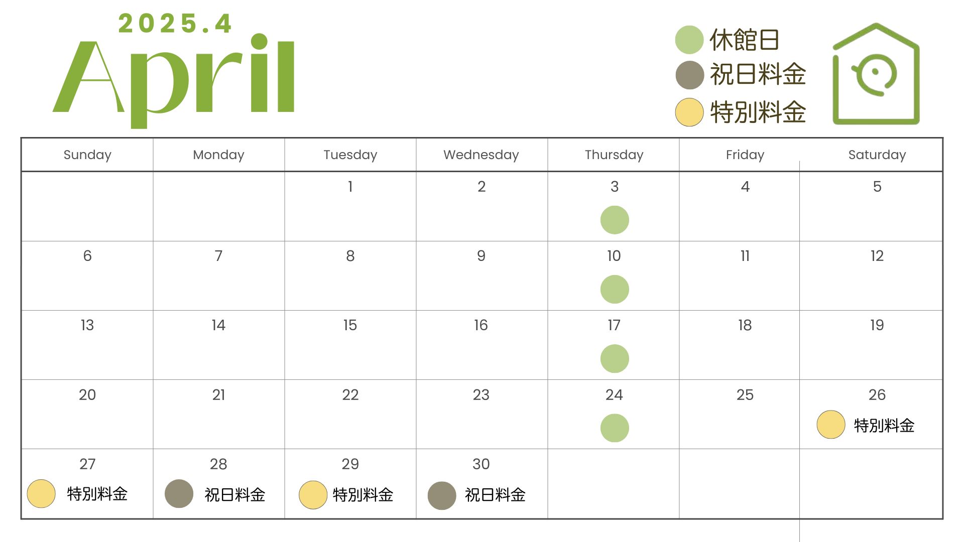 4・5月の営業カレンダー | お知らせ | コトリの湯 | 信州松代の日帰り温泉施設
