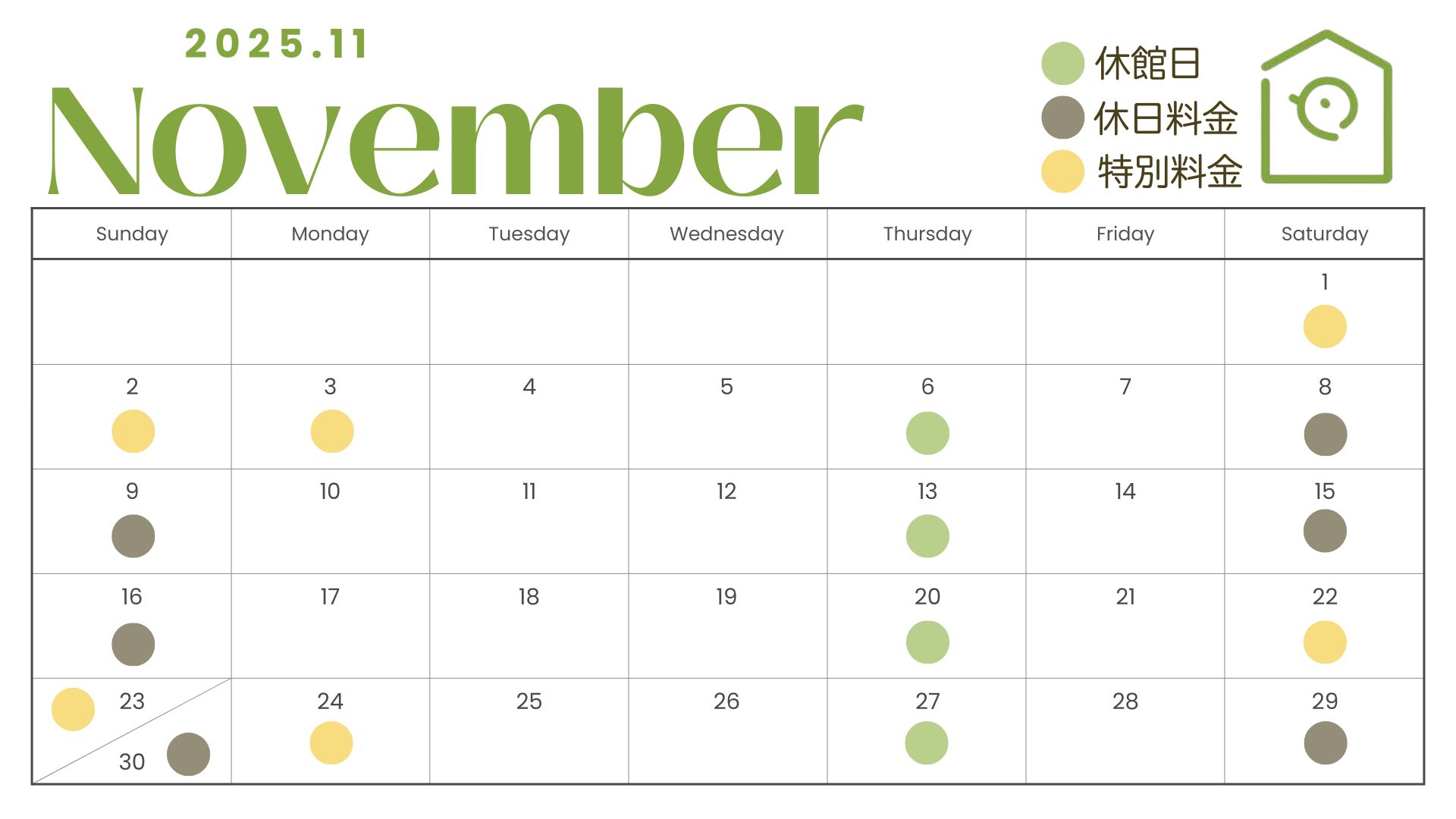 日頃よりコトリの湯をご愛願いただき誠にありがとうございます 11月の営業についてご案内いたします 特別料金 〇巣ごもりプラン 大人 1050円 子ども 550円 〇ひとっぷろプラン 大人 800円 子ども 400円 〇シジュウカラプラン 大人 950円 子ども 500円 〇ラストワンプラン 大人 600円 子ども 350円 皆様のお越しをスタッフ一同心よりお待ちしております